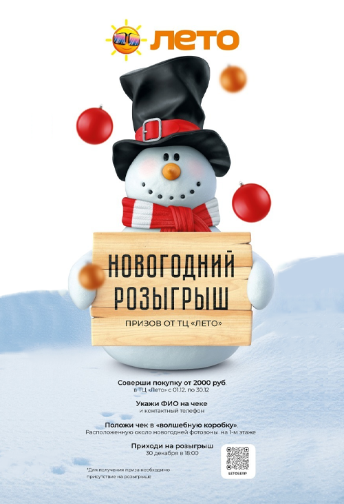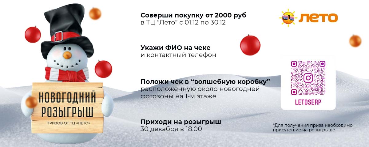 Открытие состоится во второй половине декабря, а 27 декабря приглашаем всех принять участие в праздничных мероприятиях, приуроченных к годовщине ТЦ "Лето" и открытию третьего в городе супермаркета "Детский мир"!